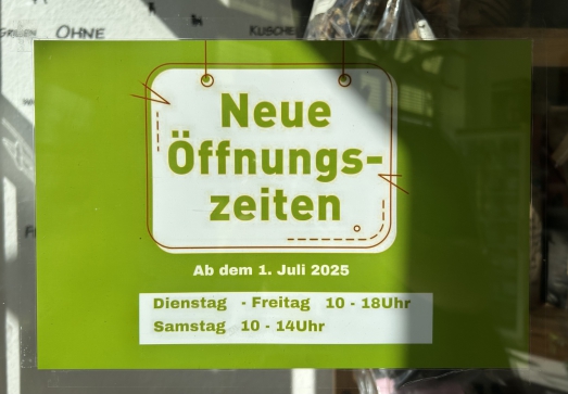 Also, das sind unsere neuen Öffnungszeiten bzw. -tage: