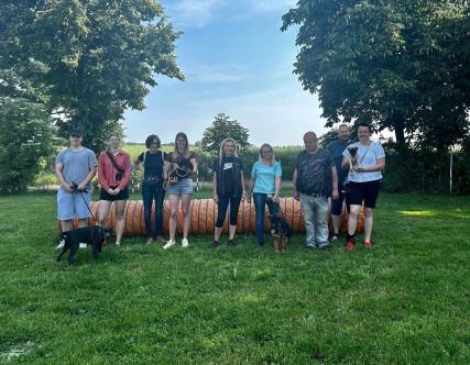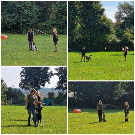 Am Sonntag beim Abschlusstraining des Junghundekurses zeigten die Vierbeiner und ihre Menschen bei schönstem Wetter, was sie in den letzten sechs Wochen gelernt haben: Leinenführigkeit, Sitz und Platz mit Zurückbleiben, Rückruf aus dem Spiel und noch einiges mehr...